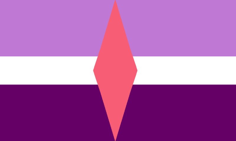 Source: https://i-love-my-trans-body.tumblr.com/post/190956867478/more-flag-redesigns-green-is-arospike-purple-is | Creator: i_love_my_trans_body | Hexadecimals: #f75e76, #ffffff, #650066, #bf79d4 | Colors: Brink Pink, White, Amethyst, Indigo | Hues: MISSING!